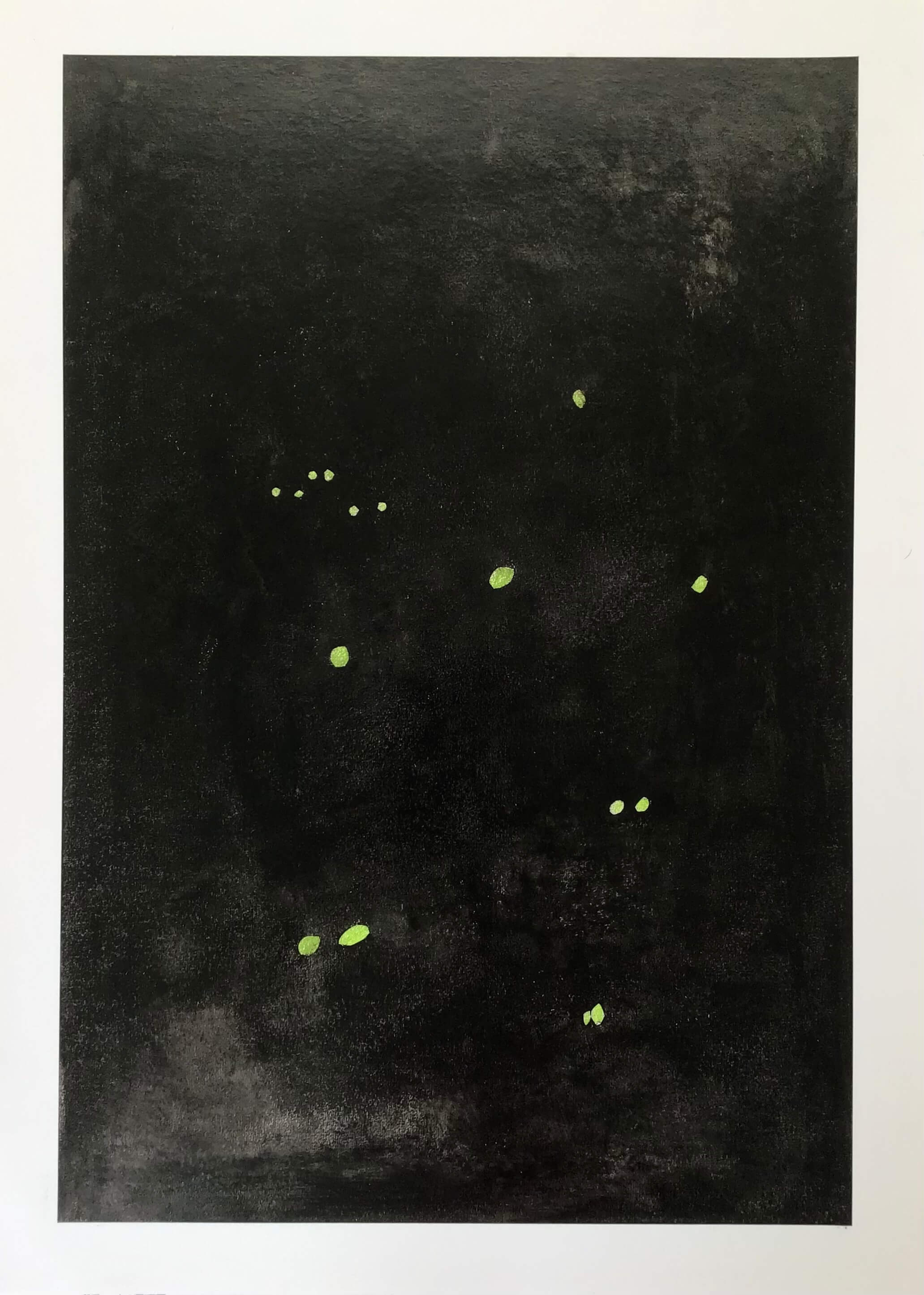 ca. 52 x 38 cm,Tusche und Lackmischung auf handgeschöpftem Büttenpapier,