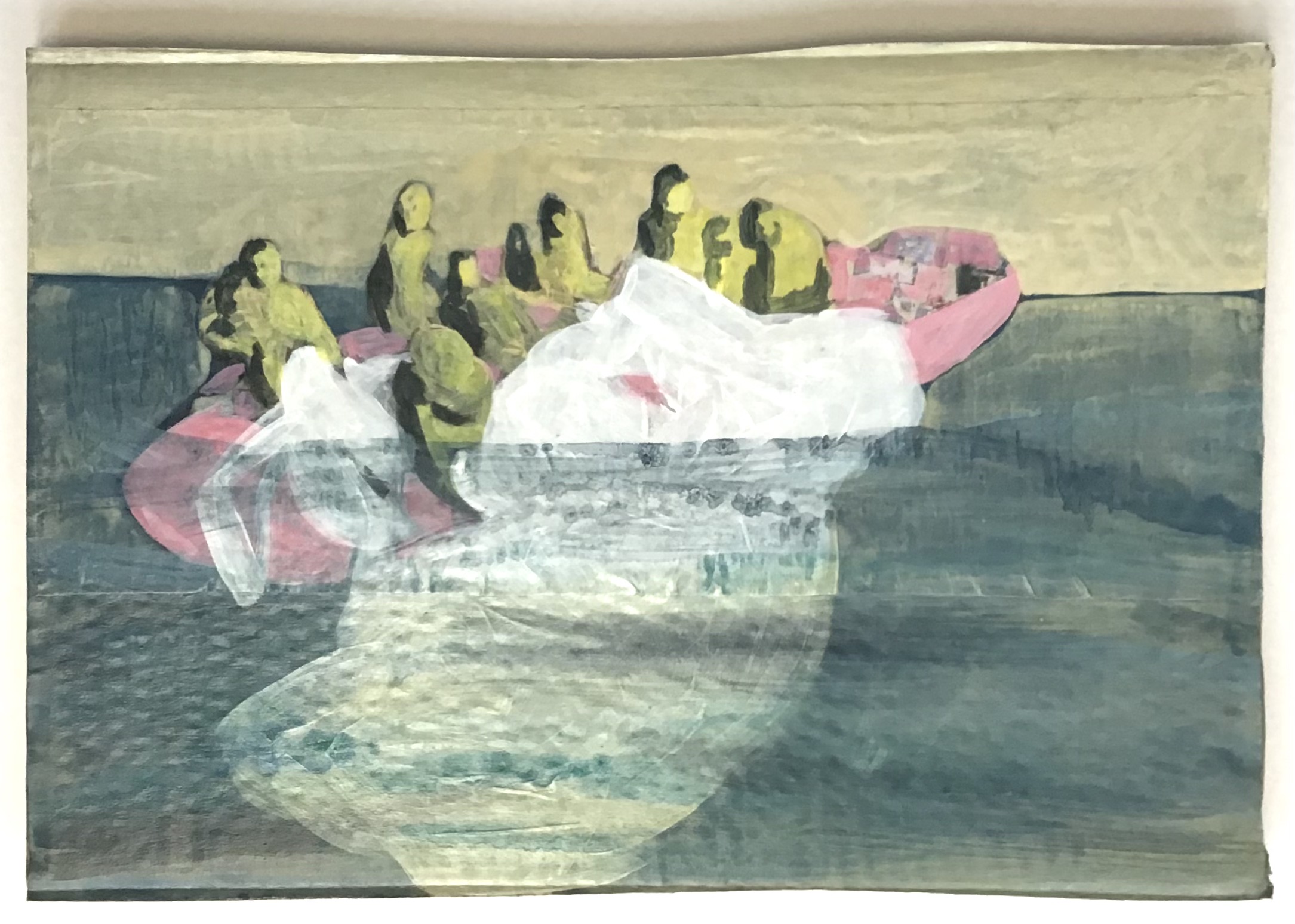 33 x 23 cm, Collage aus Papierlagen, Kreide, Acryl u.a.